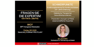 PURINA auf dem bpt-Kongress Ernährungsberatung in der tierärztlichen Praxis: Fragen Sie die Expertin Dr. Julia Fritz